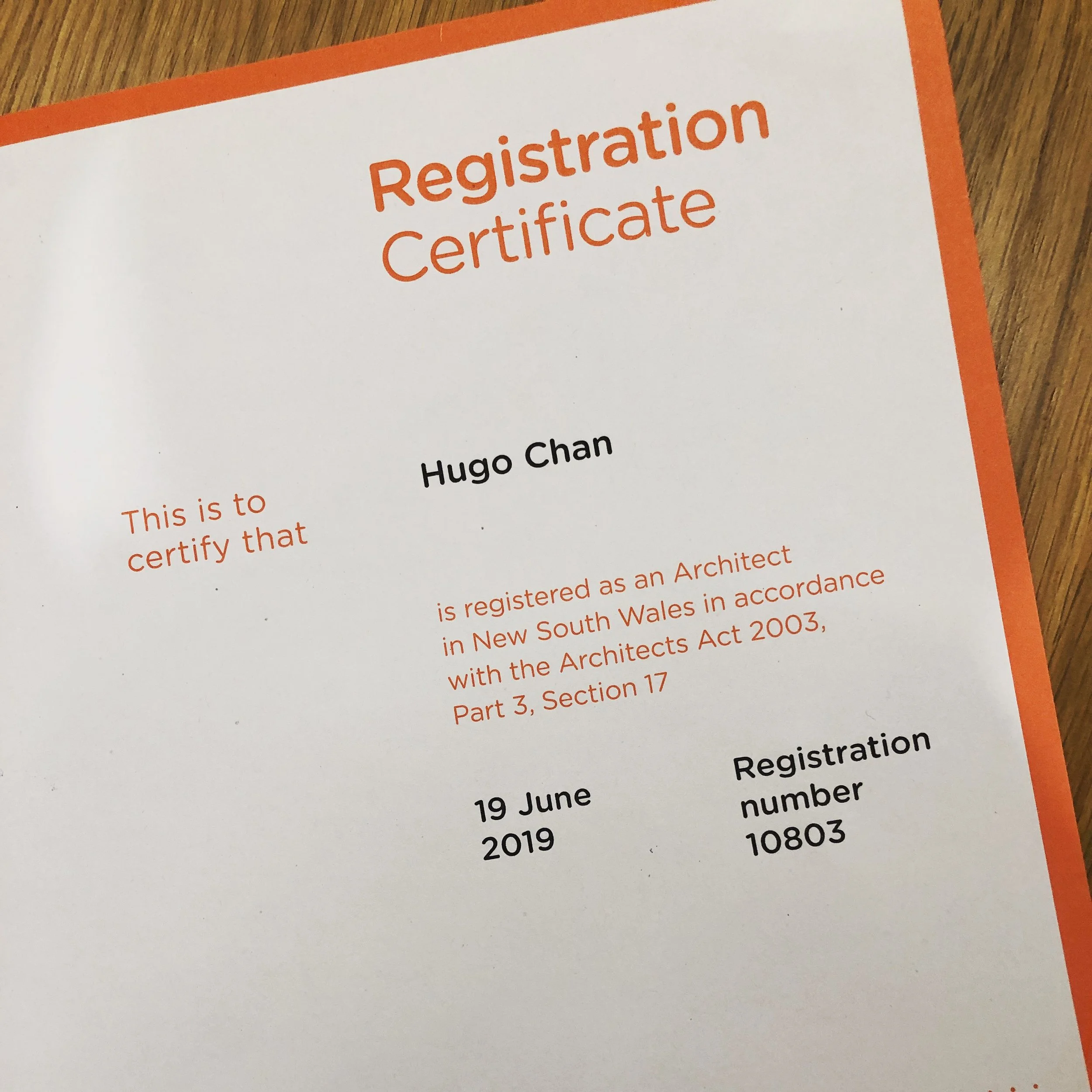 Director Hugo Chan has successfully completed the Architectural Registration Examination & Interview to become a registered practitioner in NSW. His registration now demonstrates his ability to actively practice with the level of professionalism and experience clients can expect in accordance with the Architects Act.
